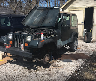 REMEMBER: FrankenJeep is a low buck project. He's for cruising in the summer and off-roading when I can. He'll never be a show quality ride. This means I'm not dumping a crap load of money (beyond the crap load I've ALREADY dumped into him) for paint... so I went with a backyard paint job.